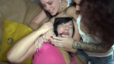 Ever since the new family moved in next door the scrawny little son has been lurking around peeping into our windows. We've caught him numerous times and he denies being an awkward little pervert who is into watching woman. Gia Love and I are relaxing on the couch and when I look up I see the little 18 year old gazing through the blinds playing with his cock. We go to the door to confront him and he stutters trying to make up an excuse for his peeping tom behavior. I threaten to call the cops and he admits he's already been arrested for this. We tell him he's ours now to do whatever we please and we force him to strip off all his clothing leaving the boy totally naked. He feebly tries to cover his cock and balls and clearly he's embarrassed being nude so I pin him between my thighs and rope up his elbows crushing them together with a tight cinch. Busty Gia grabs his head and buries it in between her big tits XXXX him a bit before tying his ankles together. I glance down and see that the little guy has a hard on. Being tied up by two dominant older women is turning him on. We smack his hard cock then I peel down my panties and force him to smell my panties. Mike readily opens his mouth to take the panties in and I wrap his face with layers of bandage. He starts to struggle and we beat his cock and balls. I use the poor helpless peeping tom as a foot rest before finishing him up in a hogtie. Gia face sits him and somehow he manages to spit the panties out of his gag so I seal them over his face giving the boy a panty hood. Gia grabs his cock and miraculously the little perv is still hard. Obviously he is enjoying this so we decide to invite some friends over to play with our bound & gagged party favor.